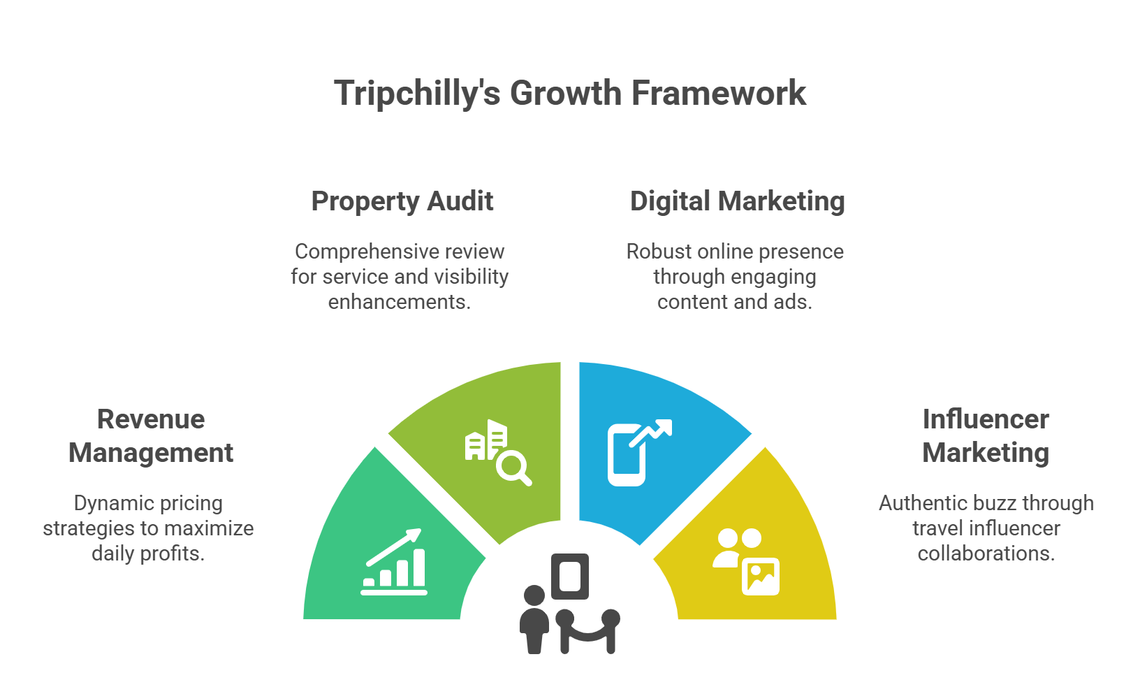 At Tripchilly Hospitality Services, we equip boutique hotels, luxury resorts, villas, and farmhouses with customized growth strategies that increase visibility, generate revenue, and maximize the guest experience. As one of the top hotel marketing company in India, we provide end-to-end services meant to optimize your property’s performance.
